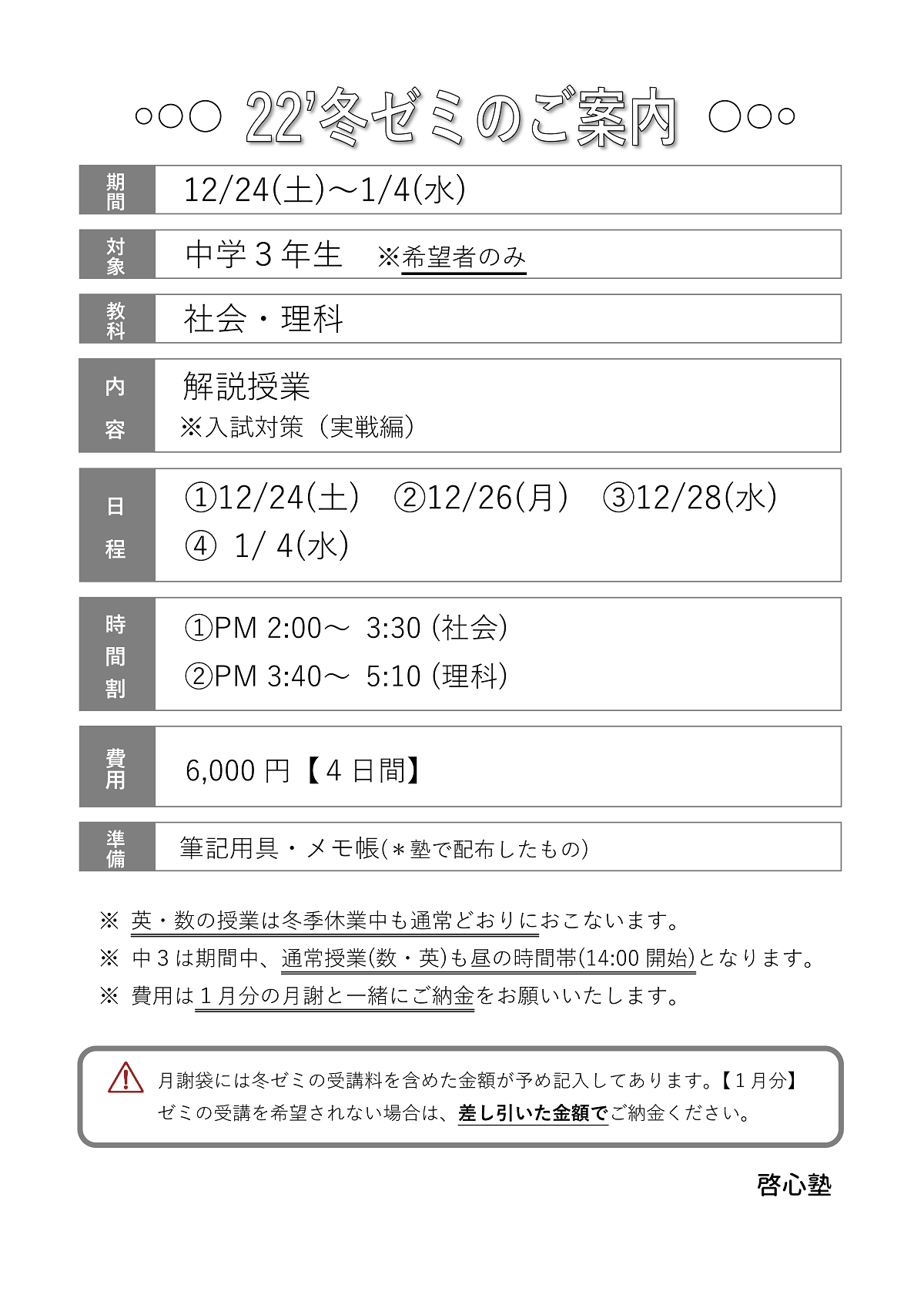 22’12月 冬ゼミ(中3)