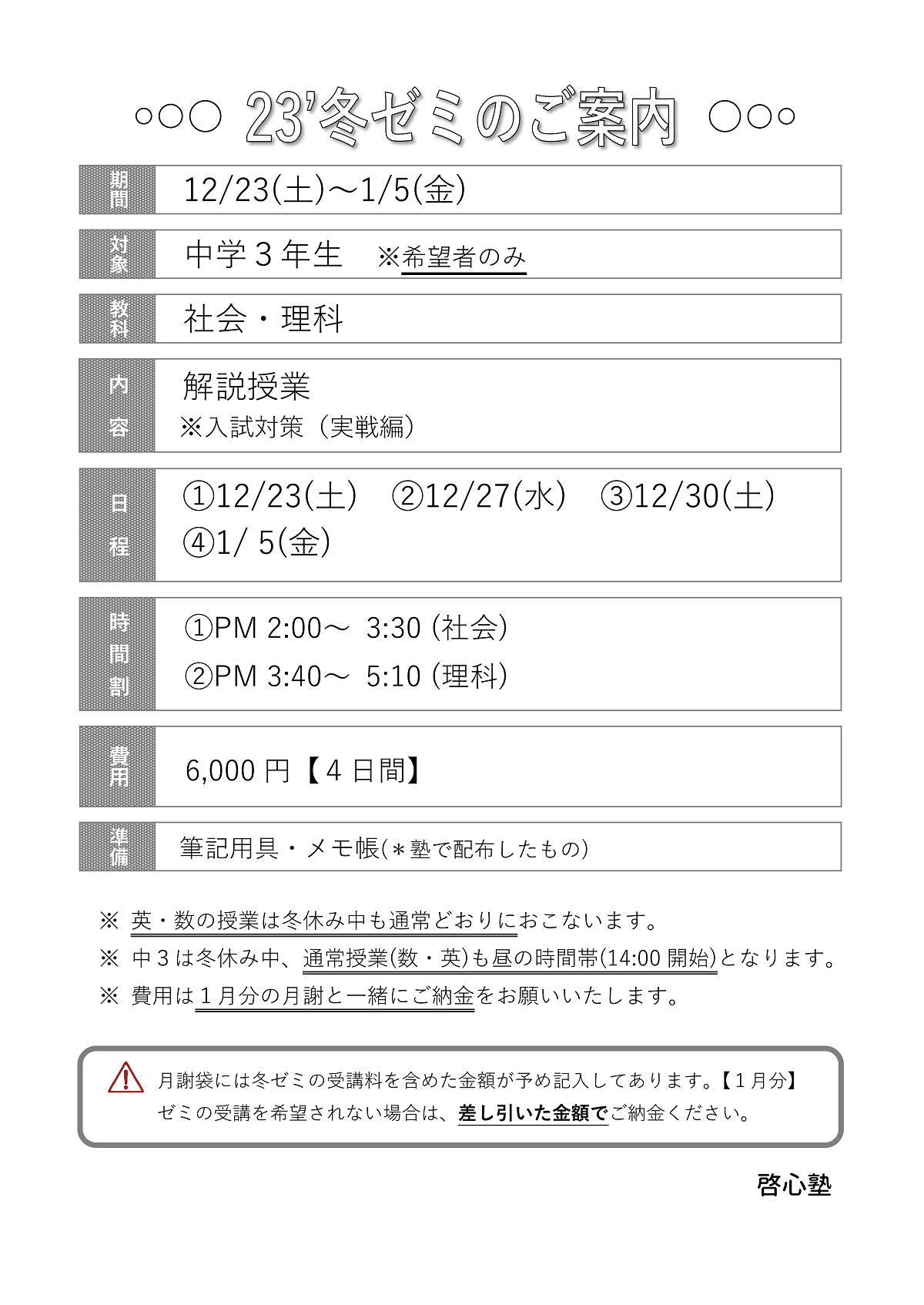 23’12月 冬ゼミ(中3)