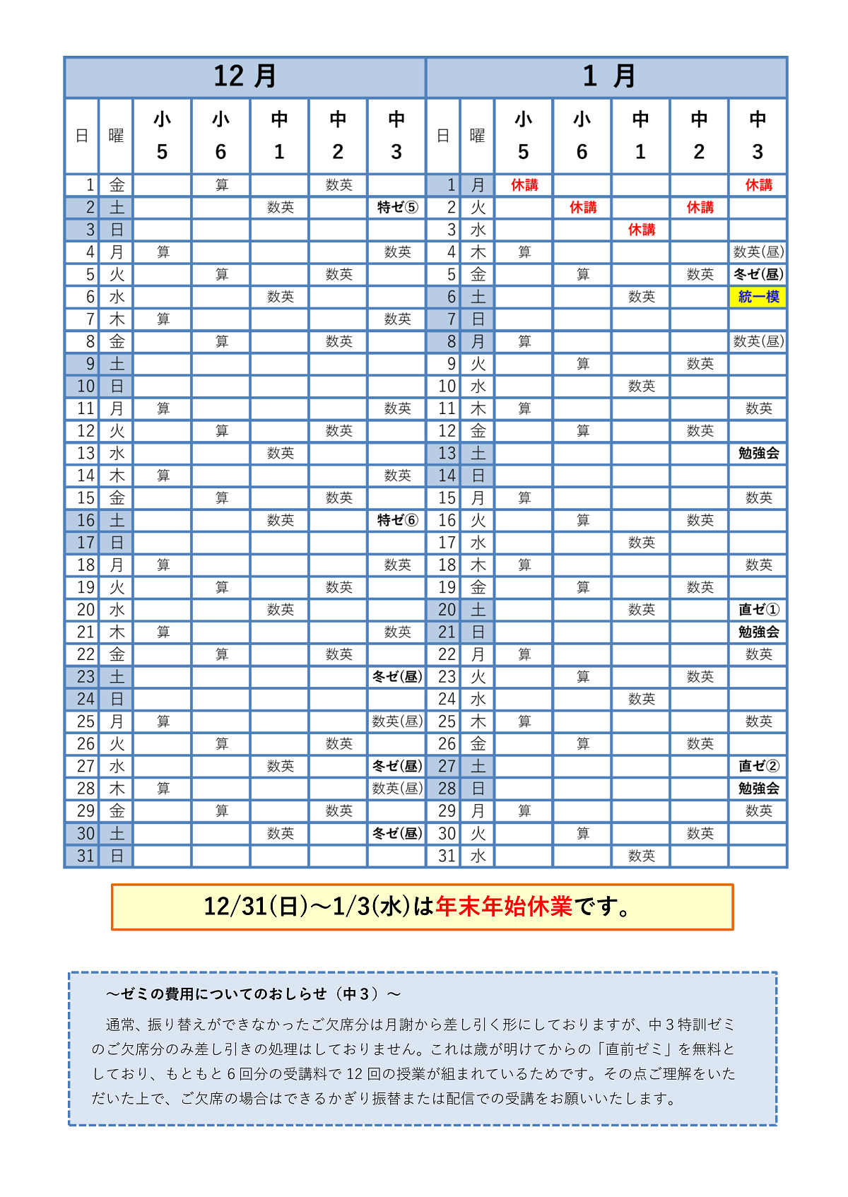 23’12月 冬ゼミ(中3)