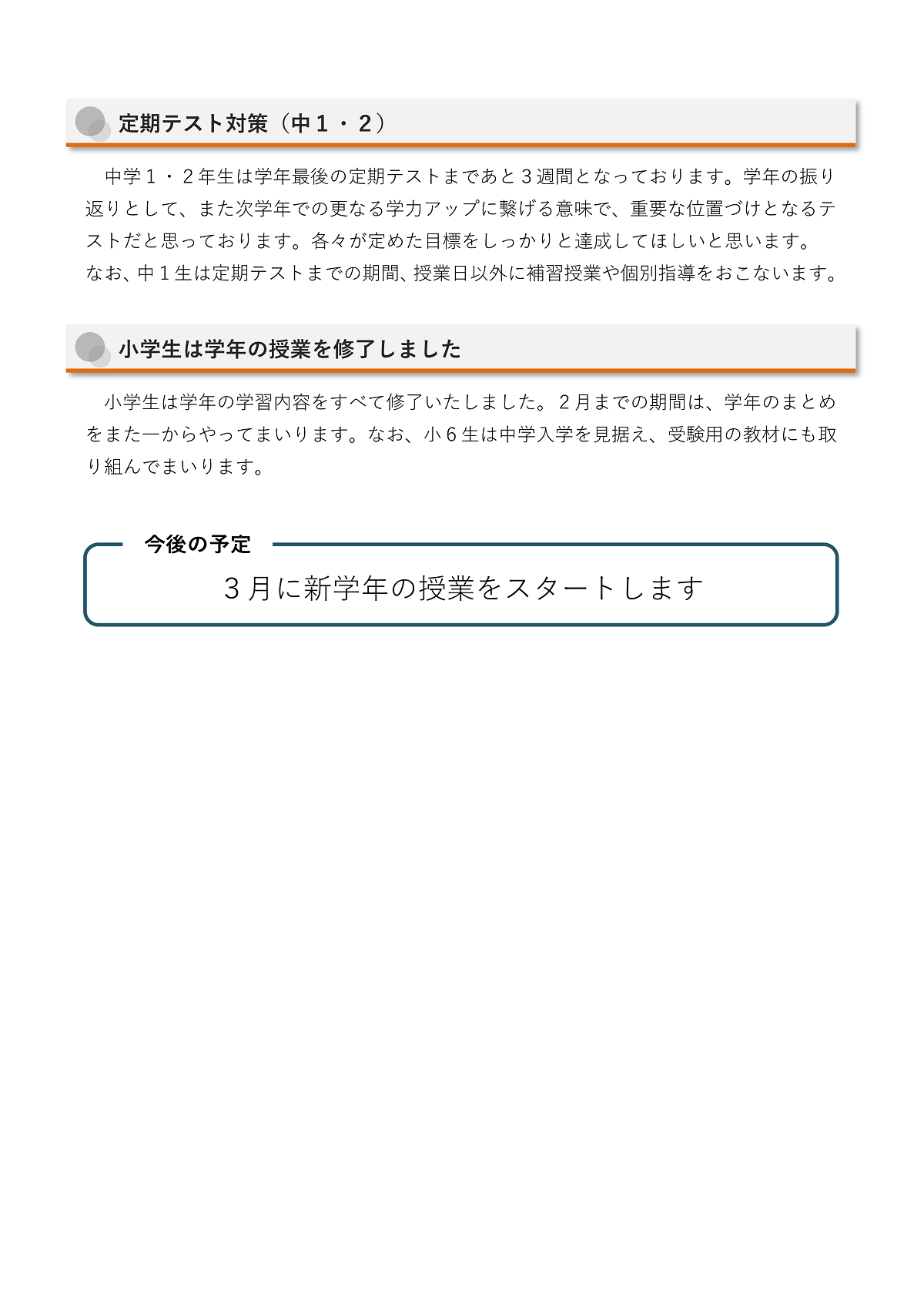 >>3/2(月) 新年度授業スタート